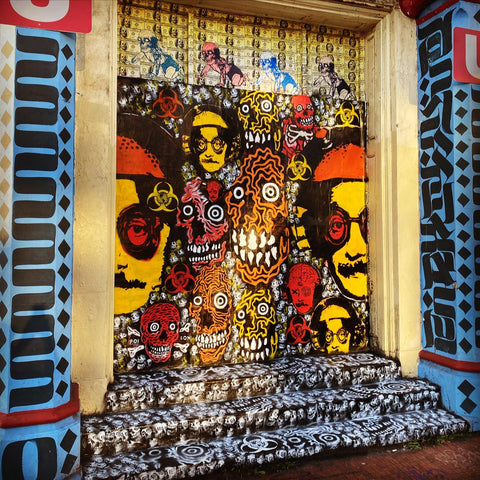 RxSkulls prints stickers for a living, sells his wares, and travels the world getting up incessantly. His work is made up of a tightly branded skull project that attempts to exemplify “memento mori” with a meta and humorous sass.