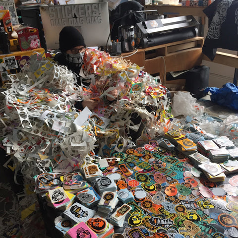 RxSkulls is an adhesive enthusiast and exterior decorator from Portland, Oregon, who specializes in screen printed sticker art from the perspective of a burnt out corporate graphic designer.